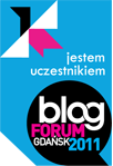Dziś otrzymałam maila z potwierdzeniem mojego uczestnictwa w Blog Forum Gdańsk 2011. Czeka mnie podróż pociągiem przez całą Polskę i dwa dni pełne dokształcających atrakcji. Jak mawiał mój wykładowca: jak każdy student, będę symulować inteligencję i znajomość tematu. Skorzystam także z „przerwy kawowej” i spożyję „lunch”, by nie odstawać nadmiernie od towarzystwa. Jako uczestnik imprezy, winnam wkleić na moim blogu nie co innego, jak „vlepkę”. Do vybo…, hm, do wyboru miałam dwie – różową i niebieską. Żadna mi tu kolorystycznie nie pasuje, ale niebieski po prostu lubię – jak ponoć większość społeczeństwa. Jest w programie konferencji kilka rzeczy na które bardzo się cieszę. Które? Nie powiem, by nie zapeszać. 😉